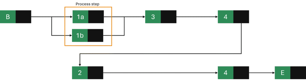Activities are grouped into process steps. A process step can contain one or multiple activities. An activity always belongs to one process step.